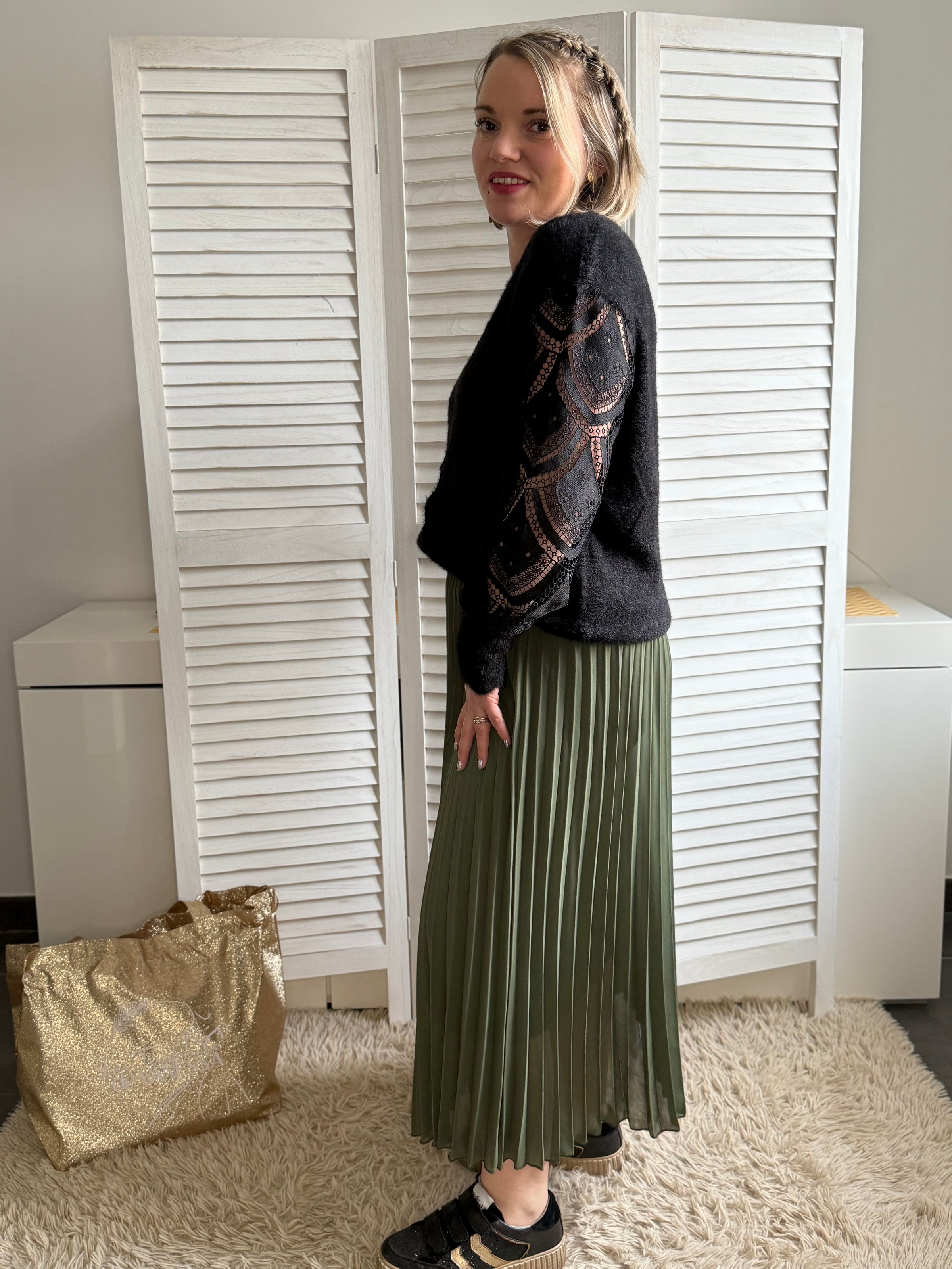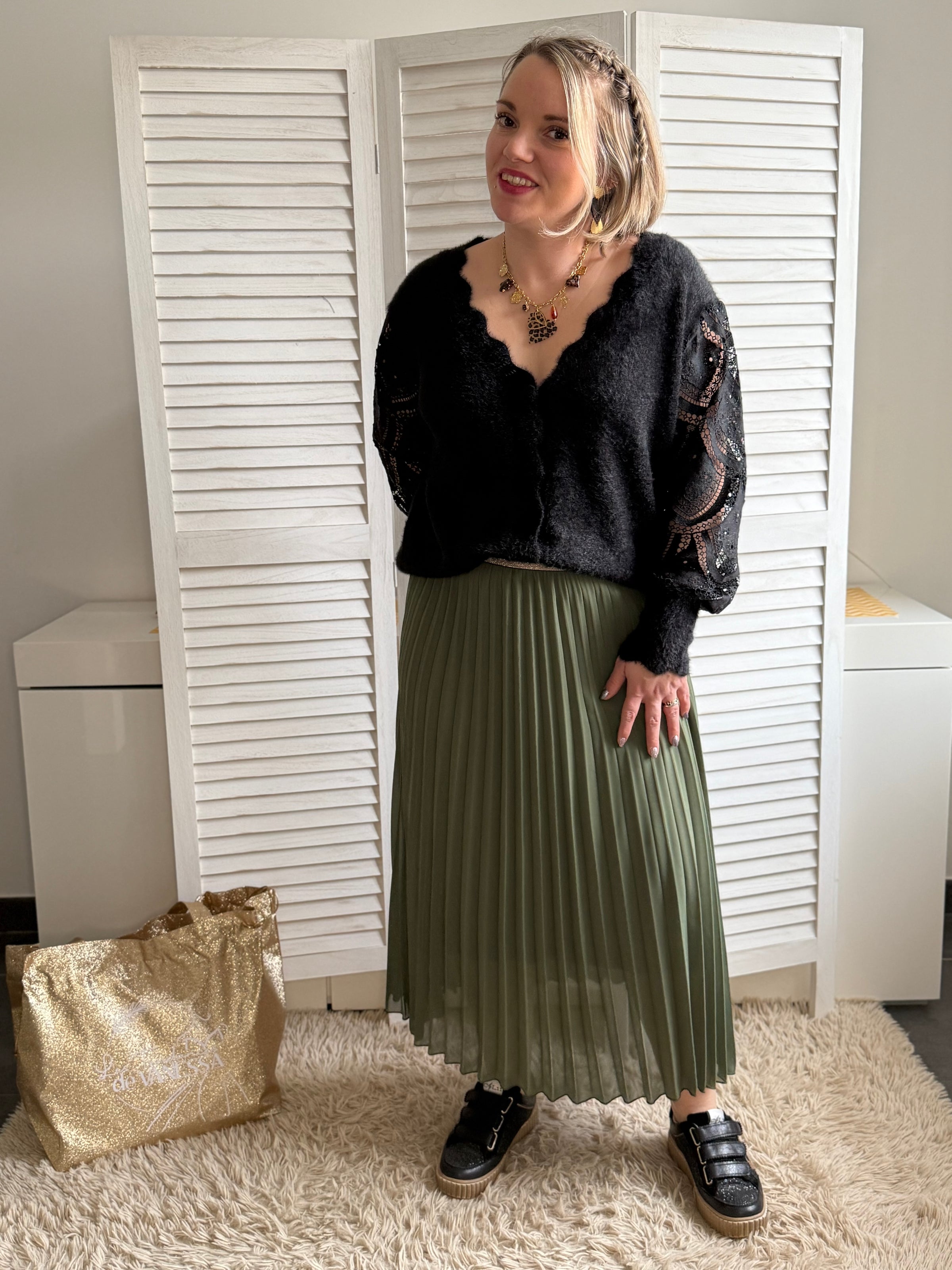 🞘 Coupe fluide, élastique doré à la taille avec doublure